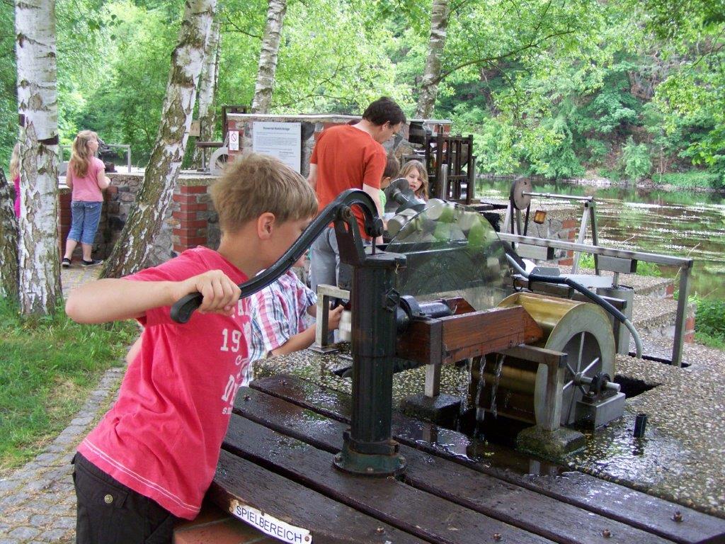 und Wasserschöpf- bzw. Hebevorrichtungen bestaunen und auch selbst in Bewegung setzen.